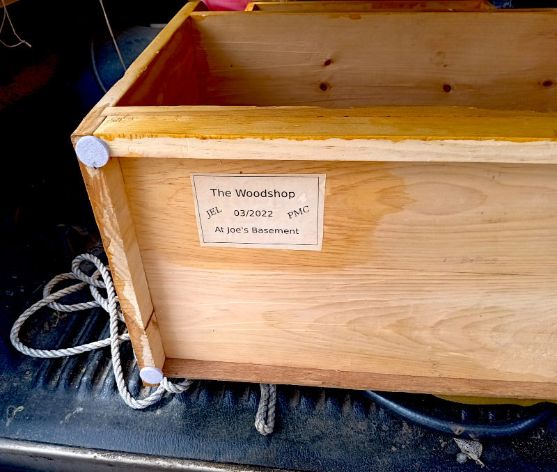 Back in 2017 when we built this box to hold my rope and canvas-working tools and supplies, Joe was interested in why I would want such a long, narrow one. The reasons were, the length would accommodate my Swedish fids, used in splicing double-braided rope, and the narrowness would allow it to fit on a shelf over the starboard settee on my boat.