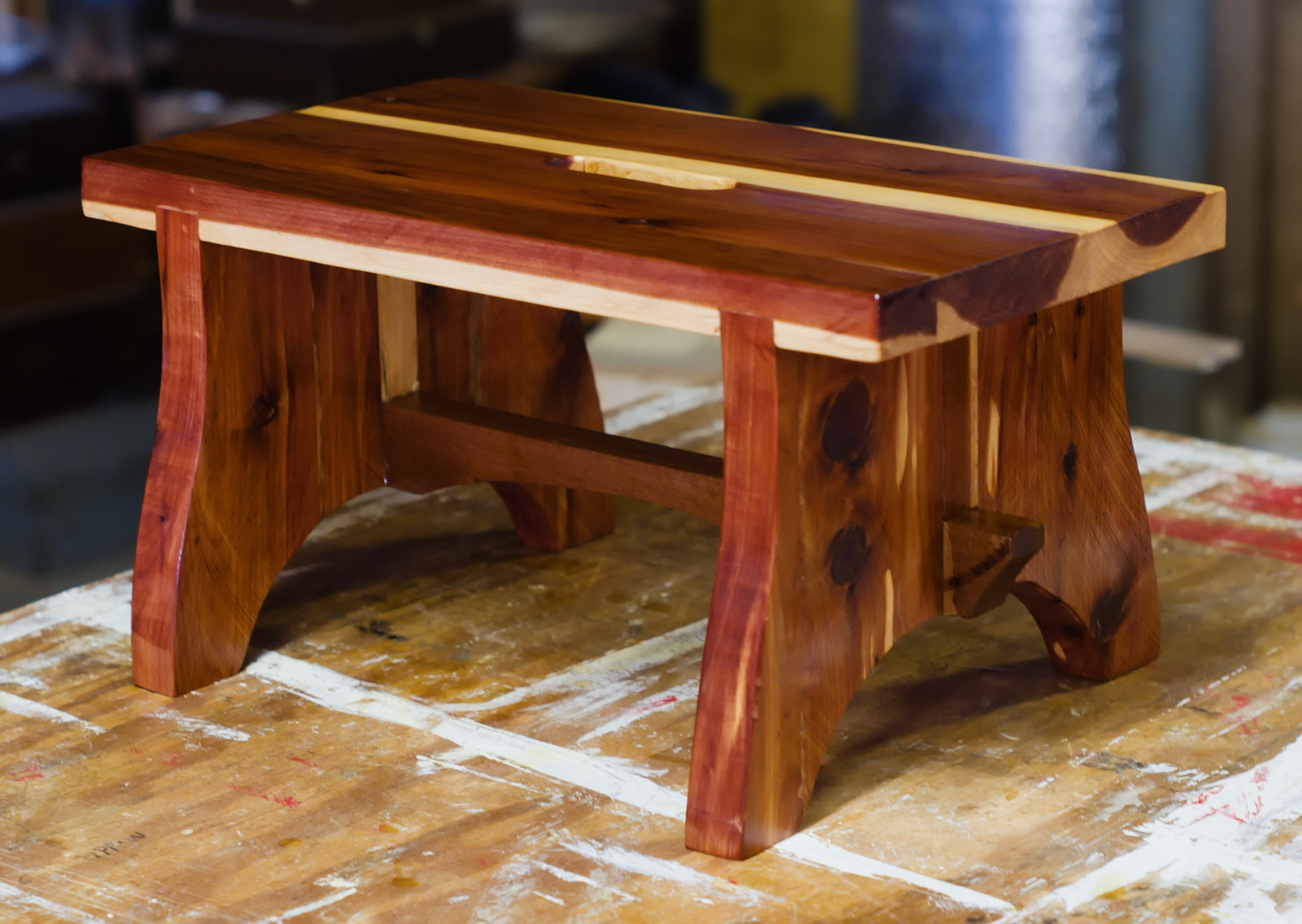 Most people like the colors in cedar, and this step-stool should garner a good price when it goes to a charity auction.