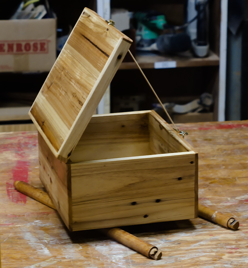 We're still making boxes. This one is salvage wood, hinges that our friends Rich and Sue provided, and a purchased magnetic catch.