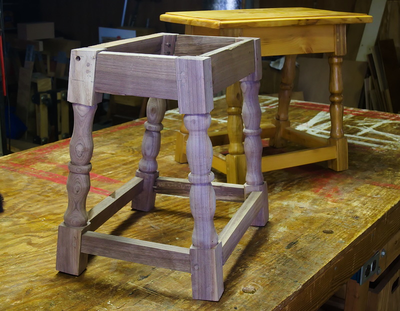 We recently completed four stepstools. Joe can find a place for three of them and I took one home, put the last two coats of finish on it, and plan to keep it. These are valuable to have because they keep you from doing stupid things like standing on a chair to reach a high shelf.